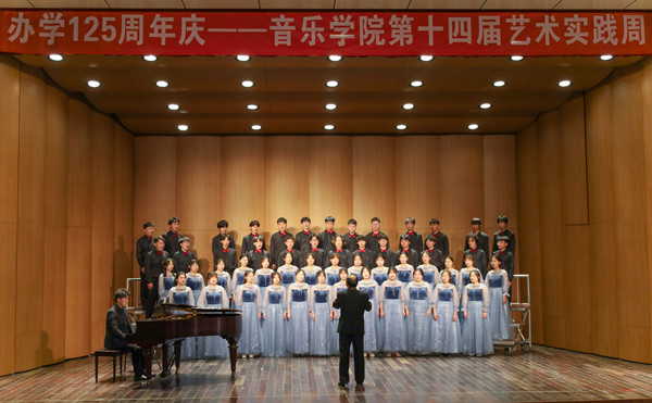 将手缓缓抬起,向外轻推,手臂戛然而止并握拳……舞台上,随着指挥起伏的手势,2020级《合唱与指挥》课程合唱团的70多位成员完成了韵律独特柔和的《雅拉香布雪山下的草原姑娘》、曲调悠扬婉转发人深省的《如果明天就是下一生》、节奏晴朗明快的《午后》等曲目的演唱。“如果明天就是下一生,你将如何度过今天”“阳光洒在绿叶上,我在吃西瓜”……不同风格的歌曲带给观众不同的听觉体验,现场气氛高涨,掌声雷动。