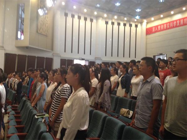 刘燕书记代表公司党政班子和全体教职工对2014级新同学表示热烈祝贺与欢迎,她结合个人的大学成长经历,情真意切、饱含深情地向广大新生阐述了大学的内涵,勉励广大新生要从接受和尊重自己的选择、珍惜当下的时光开始,尽快适应新环境,脚踏实地,努力进取,不断实现自我超越,并对同学们提出了殷切期望:一要学求真,即坚持信仰,追求真知,学做真人;二要学向善,即明理知耻、行忠恕之道;三要立美,不断涵养美的情操、美的品格与美的素养。