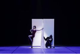 昏暗的灯光,孤零零的小熊玩偶,明艳的与灰暗的“两个我”互相推搡。舞蹈表演专业2020级的卢晓与郑雅雯原创的《我和我》以独特的光影勾勒出割裂般的表演场景,以丰富的肢体语言表达出内心的复杂煎熬。谈及准备过程,卢晓表示,在编创时与搭档难免会有意见不一致的情况,舞蹈的最终动作也是改动了十几次后才最终敲定。“这次的表演不仅锻炼了我处理问题的能力,也增强了我的心理调节能力。”卢晓说。