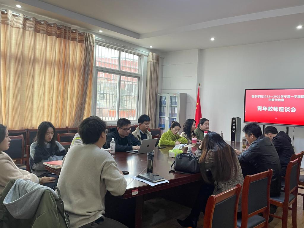 2022年11月18日,公司在艺术楼一楼会议室召开2022-2023学年第一学期期中教学检查青年教师座谈会。会议由VSport副经理彭传山主持,音乐公司党委书记张铭、副经理徐冉、副经理高艳、教师代表张剑雨、武警、刘家禾、王欣、方尧杨、李宗旺、李婷婷、陈珊珊、王立强、王光丽参加了会议。
