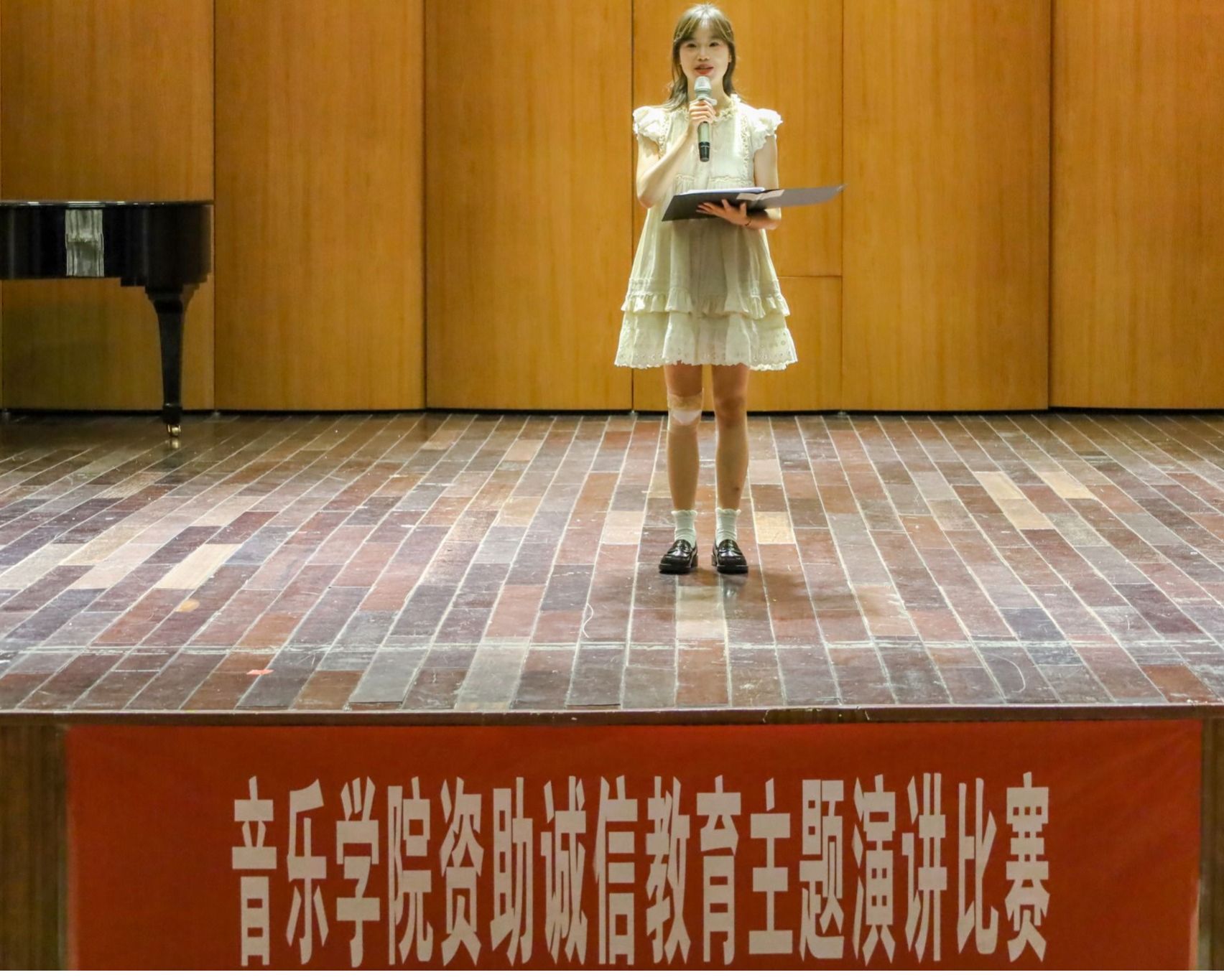 卢星对选手的表现作出点评,她指出演讲要紧扣主题,提醒选手注意区分演讲与朗诵,在演讲时不仅要避免平铺直叙,而且要充分地与观众进行眼神交流互动。音乐学专业2021(2)班的杨正鹏观看完比赛后颇有感触:“令我印象最为深刻的还是‘商鞅城门立木、一诺千金’的故事,我很喜欢从这些历史故事中汲取精神力量。”他坦言,这场比赛增强了自己的诚信意识,希望未来能够时刻约束和规范自身行为,做一名有良好道德品质的诚信老员工。