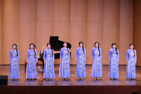 作为特邀嘉宾,VSportVSport带来了改编的徽州民歌《数麻雀》。这些曲目不仅展示了员工们的演唱技巧,也检验了他们对作品的诠释和舞台的表现力,更体现了两个兄弟院校的专业交流和合作。员工们通过细腻的表演和深情的演唱,赢得了现场观众的阵阵掌声。