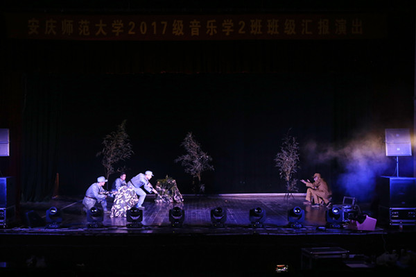 2017级音乐学2班的音乐舞台剧《星星之火,革命永恒》,让大家眼前一亮。身穿军装,手拿长枪,在炮火声中勇敢穿行,战场上的厮杀画面呈现在观众眼前。拯救战友、离开家乡、不舍亲人……一幕幕画面,在同学的演绎下,生动传神。四幕场景,四首歌曲,十六位同学演绎完成,赢得观众的热烈掌声。