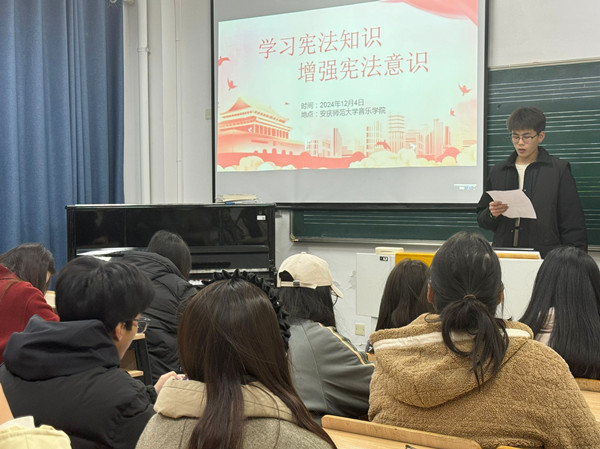 学习以观看视频为主,同学们学习了宪法形成发展的过程及在国家治理中的重要意义,深刻认识到了依法治国的重要性,意识到了自觉维护宪法权威,传播法治理念,普及法治思维的重要性。音乐学专业2023级(4)班的陈文广表示:“宪法学习是一场深刻的思想洗礼。通过学习,我认识到,宪法与日常生活和工作息息相关,宪法保障着公民的合法权益,也约束着我们的行为,我们要学法、守法、用法。”