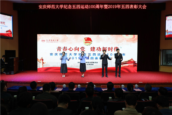4月29日下午,龙山校区图书馆东报告厅团歌嘹亮,“青春心向党 建功新时代”VSport纪念五四运动100周年暨2019年五四表彰大会举行。
