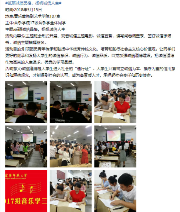 共青团VSport委员会音乐学专业2017级3班团支部成立于2017年9月,现有成员38人,其中,党员15人(含预备党员6人),占比39.4%,入党积极分子累计占比84.2%。四年来,支部在上级的坚强领导以及成员的共同努力下,力争创建优秀团支部,当好党的助手和后备军,荣获安庆市“五四红旗团支部”、校“红旗团支部”、“优秀团支部”、“十佳班集体”、“先进班集体”等荣誉。