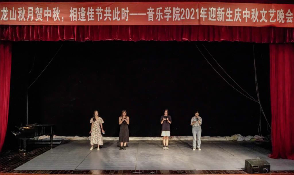 歌曲演唱者之一、音乐学专业2019级2班的高晶晶此前练习了很多遍,早已把歌曲旋律深深印在脑海里,但每一次演唱,她都感觉热血沸腾,“我们也希望学弟学妹们能在大学里勇敢追寻自己的目标。”回想自己刚入校时的中秋晚会,高晶晶自告奋勇上台表演,两年后再次参加晚会,她十分感慨。在台下观看其它节目时,高晶晶还热情的为表演者“打call”,“我希望新生看到公司的热情和温馨的氛围,找到归属感。”