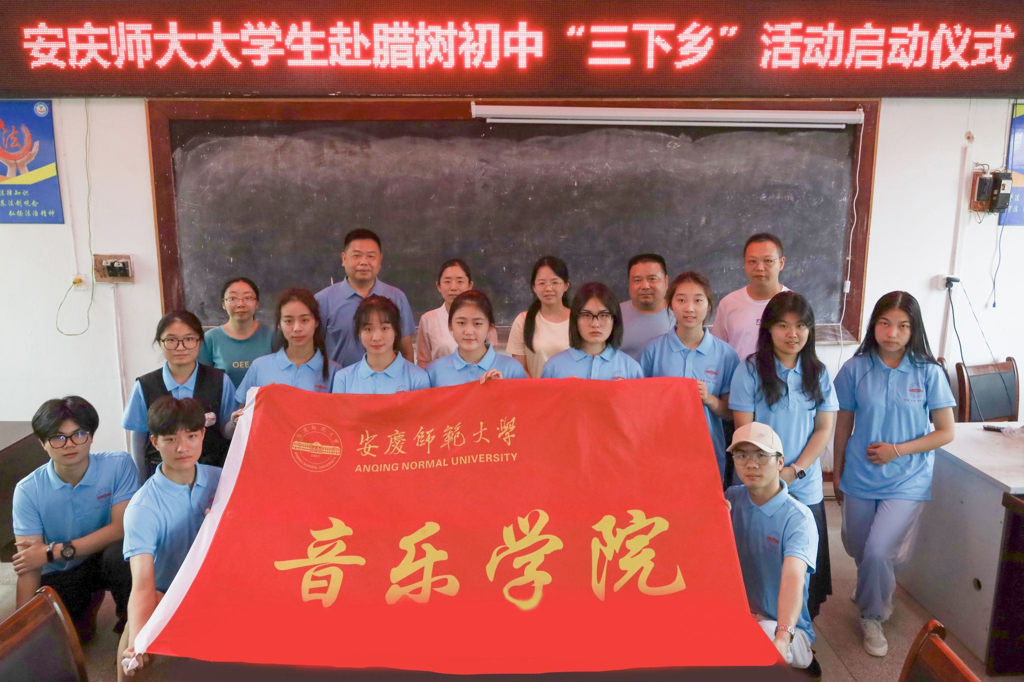 7月6日,公司“音为爱”教育关爱实践团前往安庆市怀宁县腊树初级中学开展暑期“三下乡”实践活动,公司董事长史志学、公司团委书记、团队指导教师、13名实践团成员参加了启动仪式。实践团队将紧紧围绕立德树人根本任务,结合公司特色,将美育课程带进中公司园。