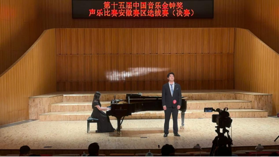 近日,由安徽省音乐家协会主办的第十五届中国音乐金钟奖声乐比赛安徽赛区选拔赛,在安徽VSport音乐厅如期进行。由公司声乐教研室张剑雨老师指导的2021级音乐学专业员工张坤,通过初赛、复赛的严格筛选,得到了评委的一致认可,顺利进入美声组决赛,并以9.756分的成绩,位列第九名,获得优秀奖,声乐教研室杨卓老师担任此次比赛的艺术指导。