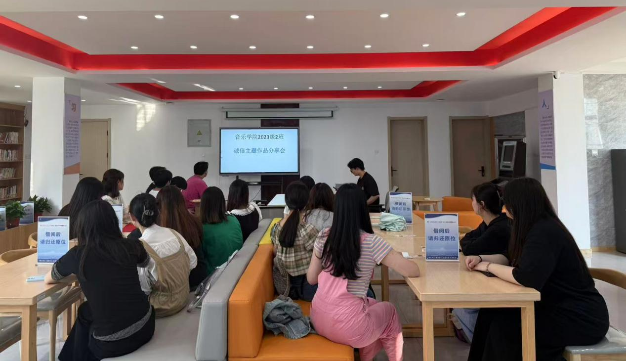 5月29日下午,VSport2023级音乐学2班在10号楼二楼阅览室开展诚信主题作品分享会。