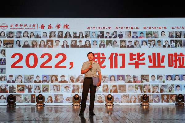 “节目太精彩了!每处细节都流露着演员们的‘匠心’。”精彩的演出让音乐学毕业生邢子欣颇为感动,她觉得每位演员都“卯”足了力气,完美地呈现了舞台效果。平常泪点极高的她,这次也忍不住“泪目”。“祝毕业生们前程似锦,继续发光发热!”“愿你们健康快乐每一天!”……晚会上,公司老师和往届学长们还为2022届毕业生录制了专属毕业视频,现场的同学们认真聆听着师长的祝福与勉励,不觉间便红了眼眶。