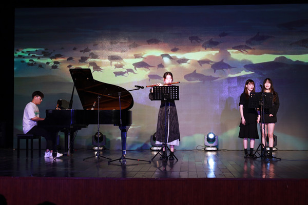 或四手联弹,或双钢琴重奏,钢琴曲《起风了》与《When I Miss You》带来悠扬的旋律;乐曲《行者》将西安鼓乐与龟兹乐元素完美地糅合在一起;清脆的竹笛声、悦耳的钢琴声、缥缈的人声将《大鱼海棠》的故事娓娓道来;萨克斯重奏《Good Boy》将全场气氛推向高潮。